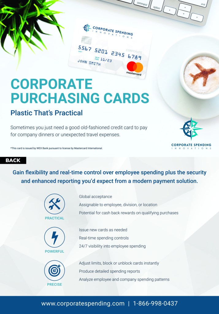 This request came from the CSI Travel Department. They wanted to have collateral created to handout at trade shows that wasn’t the typical 8.5 x 11 flyer. The focus was on the benefits of using corporate purchasing cards. This postcard mock-up, enhanced the theme in a playful manner. I doctored the design on the milk froth into the shape of a plane to tie into the theme.